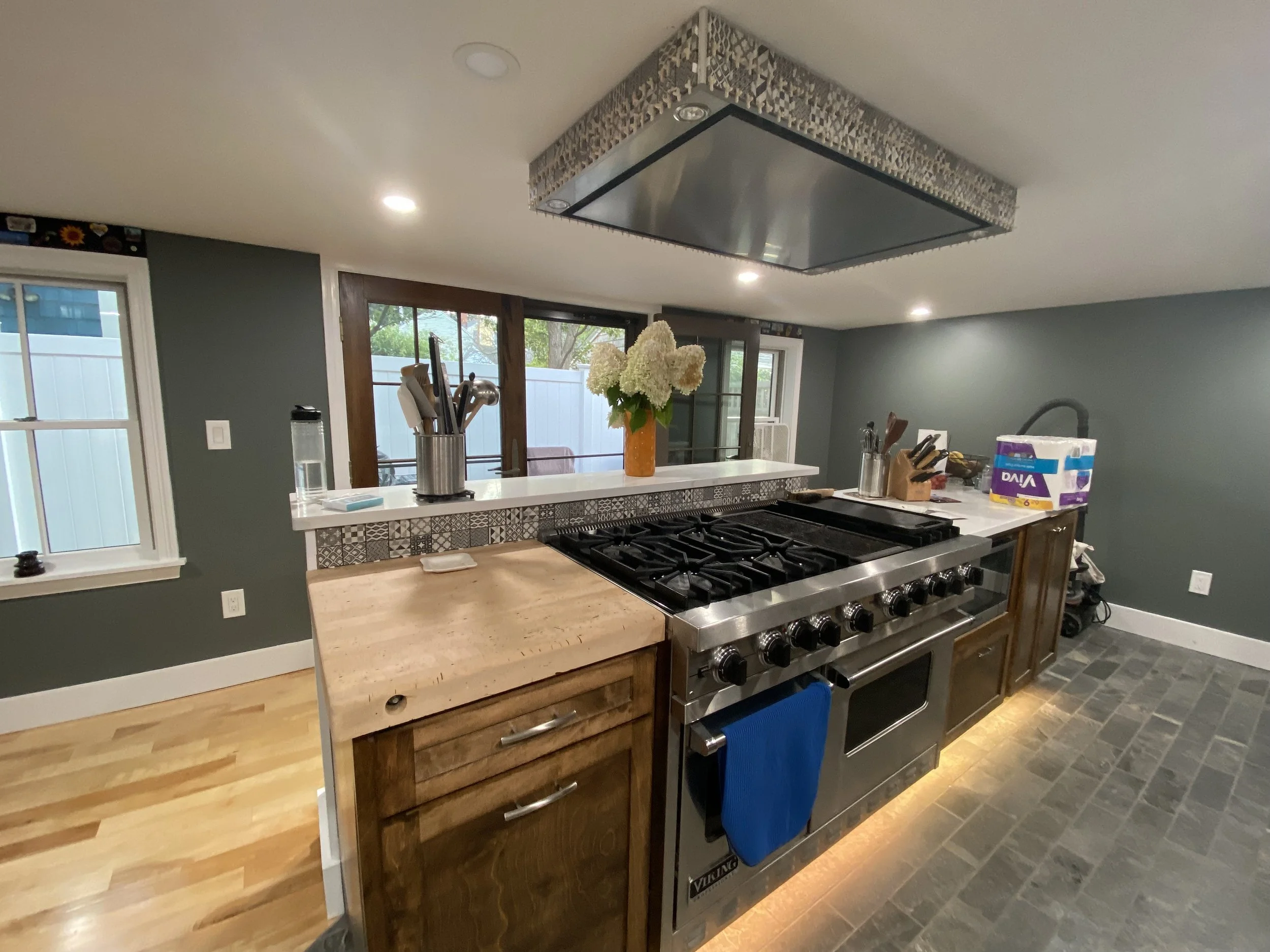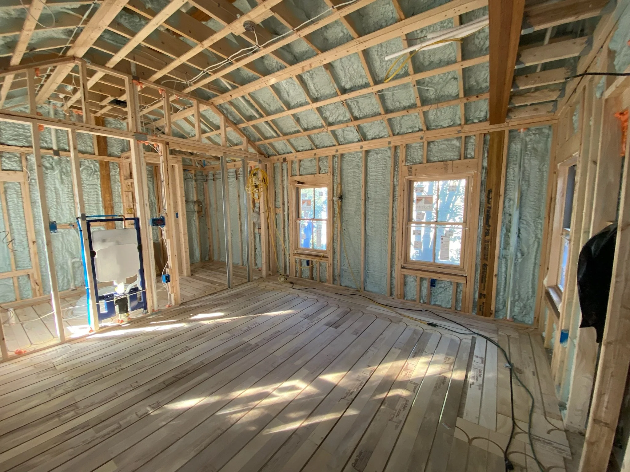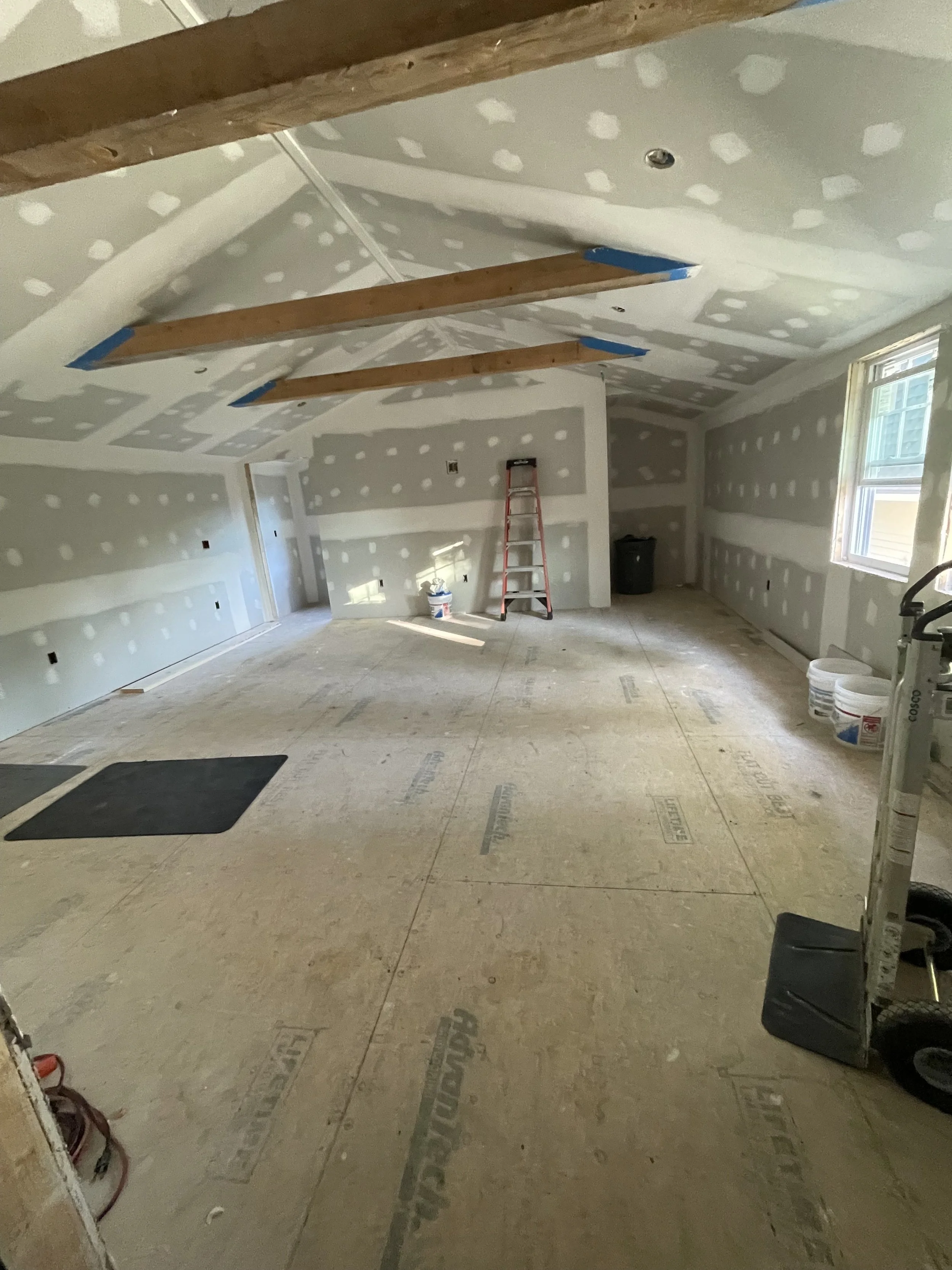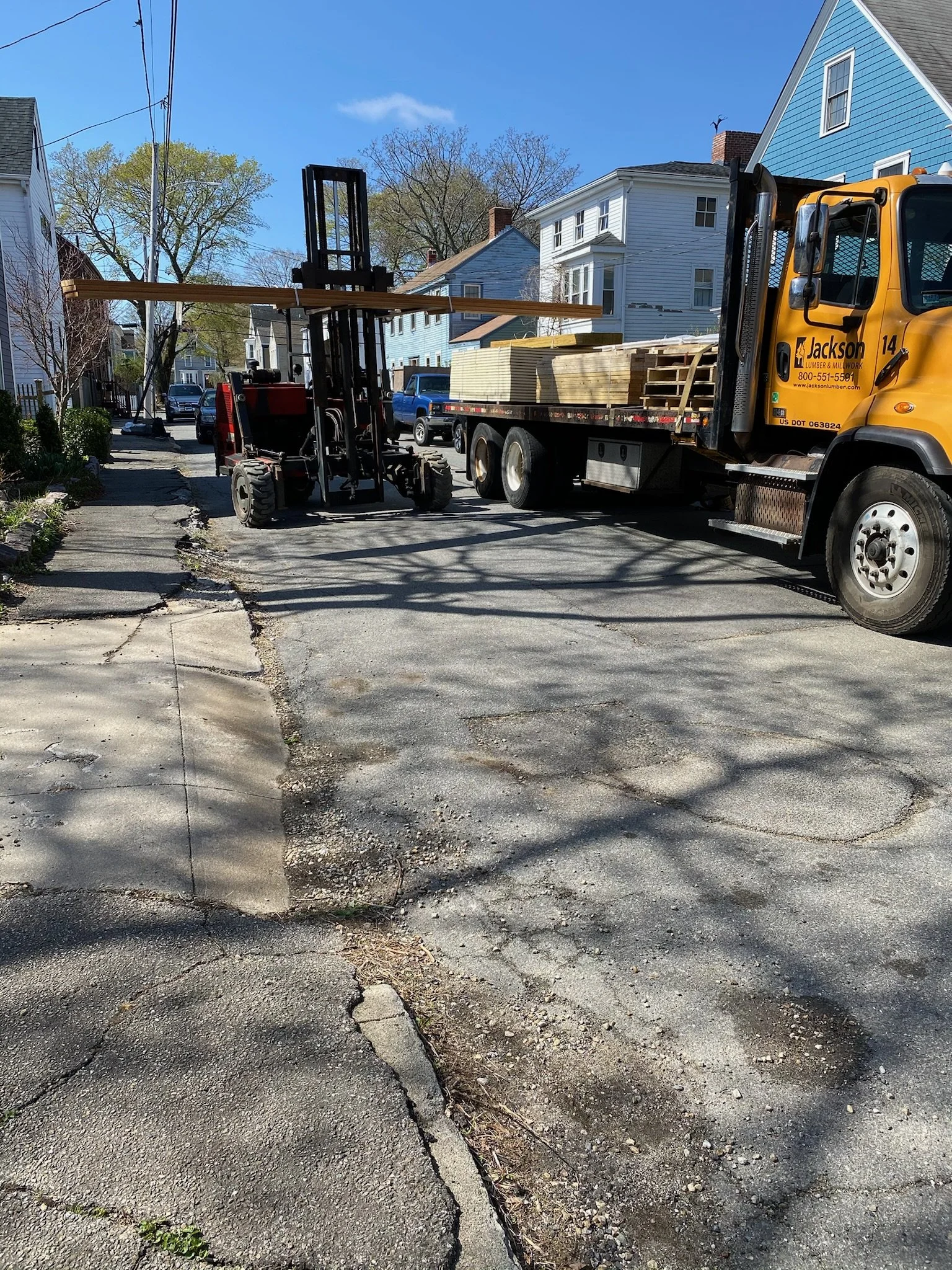 HAVING NO DRIVEWAY OR LAND TO SPEAK OF MADE THIS JOB ALREADY CHALLENGING ENOUGH TO DO THE WORK. EVERY DELIVERY HAD TO BE DONE IN THE STREET SO THEY WERE DONE FIRST THING IN THE MORNING AND WHATEVER WAS LEFT AT THE END OF THE DAY WAS PUT INSIDE OF THE ADDITION IN ORDER TO NOT BE AN INCONVENIENCE TO THE NEIGHBORHOOD.