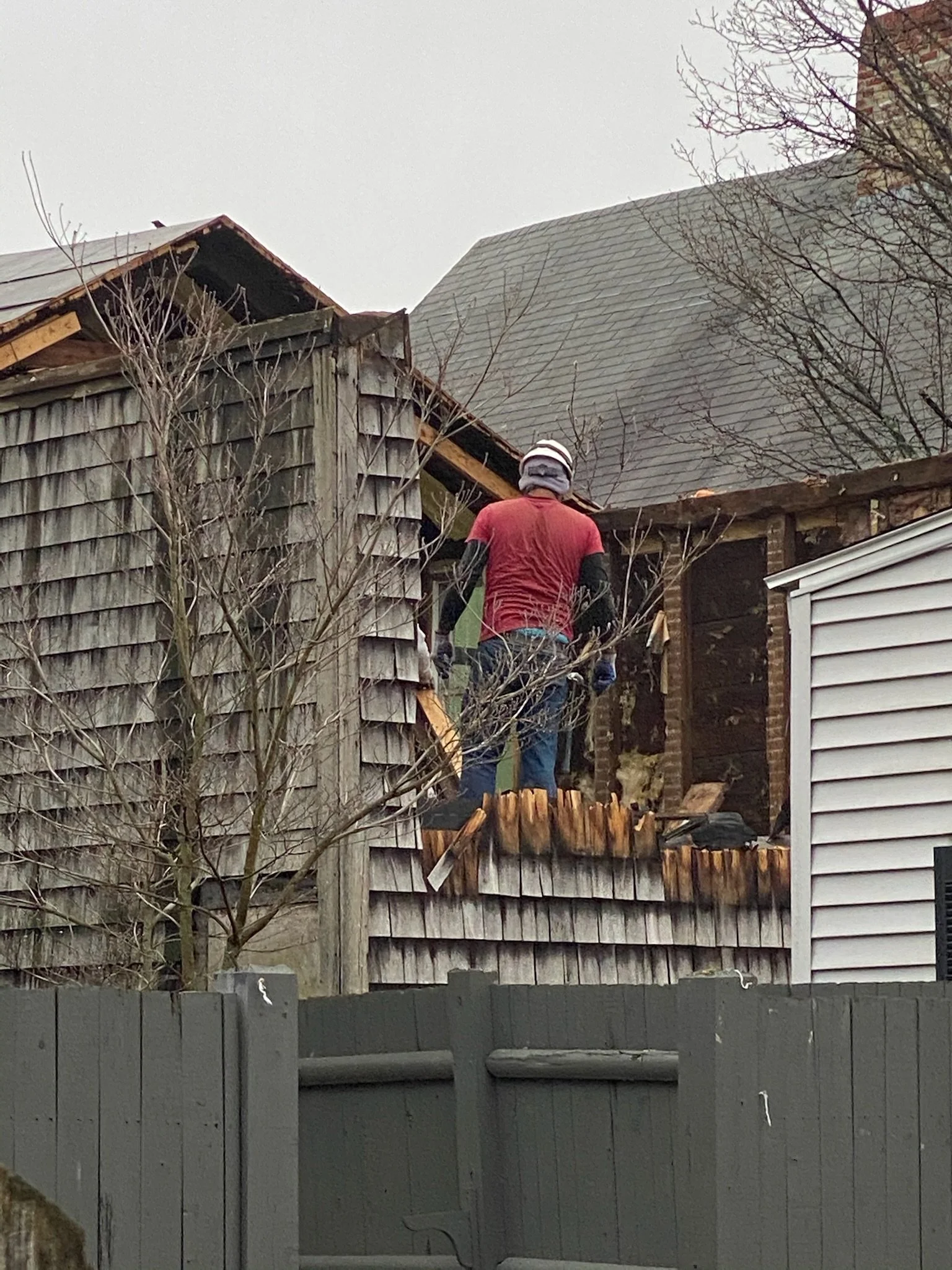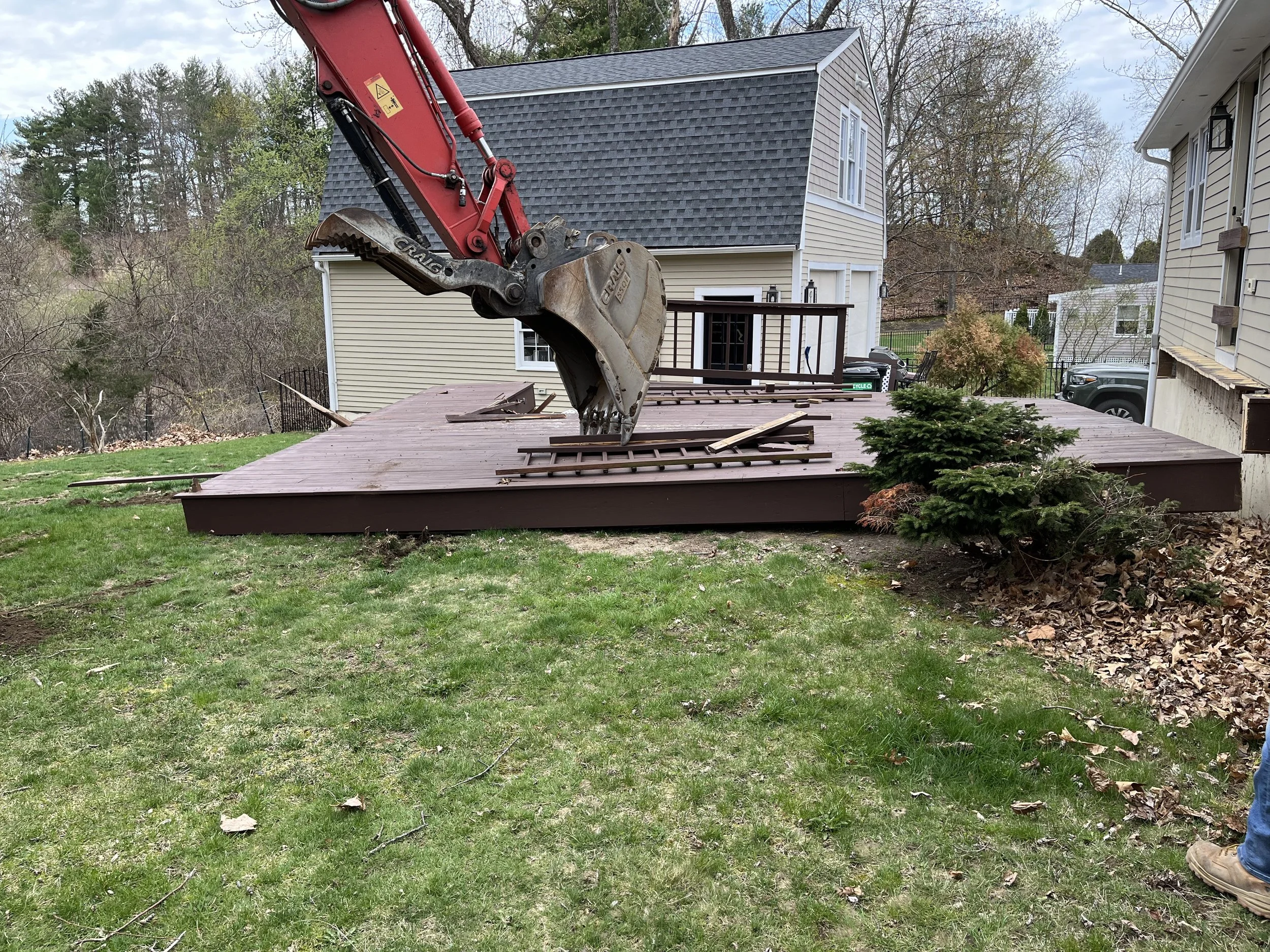 MACHINES ARE GREAT WHEN YOU CAN USE THEM BUT THEY ARE NOT ALWAYS THE ANSWER. EVEN THOUGH WE HAD A DEMOLITION COMPANY INSTEAD OF A MACHINE THE ENTIRE TWO STORY ADDITION WAS GONE IN ONE DAY.